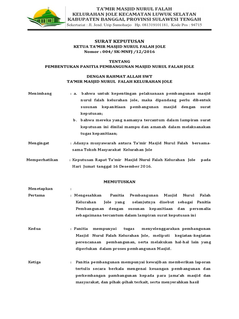 Sk takmir masjid format pdf sk pengurus masjid dari desa format doc.